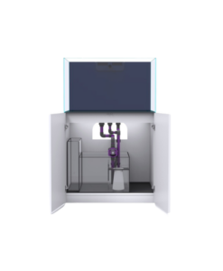 Aquarium mit externem Überlaufschacht und drei Seiten in Ultra-Klarglas, Unterschrank, Vorverklebte PVC-Verrohrung, Filterbecken inkl. Filtersocke, separates Nachfüllbecken