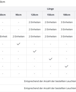 | Aufhaengeset | Entsprechend der Anzahl der bestellten Leuchten |